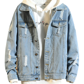 Cool desgastado Hombre Denim Jaket Botton Gents abrigo de manga larga de talla grande Jeans chaqueta