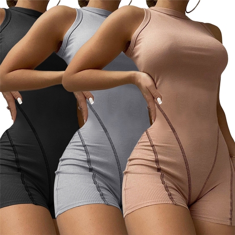 Verano gran oferta 3 colores mameluco ver a través de flaco sin mangas sólido tejido acanalado un hombro 2023 2024 mujeres Moda