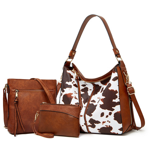 Vintage hayvan baskı deri bayanlar el çantaları omuz kadınlar çanta seti özel çanta kesesi dökün femme